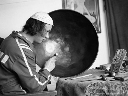 „Abgesehen von einem zweijährigen Medizinstudium an der Universität Essen war mein Leben geprägt von der Auseinandersetzung mit Stahl und Blech. Das ist nicht verwunderlich, denn meine Stadt – Dortmund – war eine der bedeutendsten Stahlproduktionsstätten Europas. Meine Karriere begann 1960 als Büromaschinenmechaniker, später reparierte ich Offsetdruckmaschinen. Dann lernte ich während meiner mehrjährigen Tätigkeit bei Thyssen-Krupp und Hoesch den Stahl im flüssigen Zustand sowie das Prozedere der Stahlveredelung kennen. Am 04. Januar 1978 sah ich dann die erste Steeldrum – Liebe auf den ersten Blick! Sofort hatte ich mir in den Kopf gesetzt, ein solches Instrument selbst zu bauen. Ich versuchte, verwarf, änderte. Nach einem halben Jahr gelang es mir erstmals, dem Blech feine und warme Töne zu entlocken. Das Erforschen der Geheimnisse des Blechs hörte für mich seitdem niemals auf.“ ecs-steeldrums.de